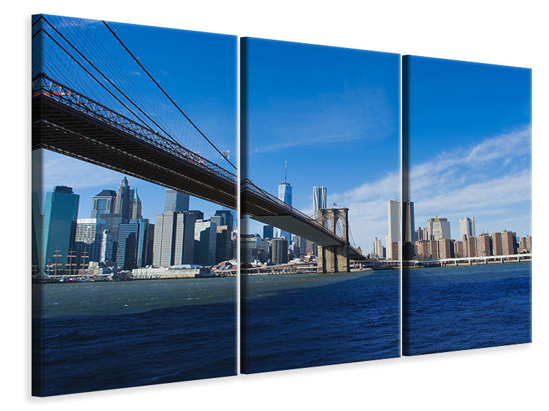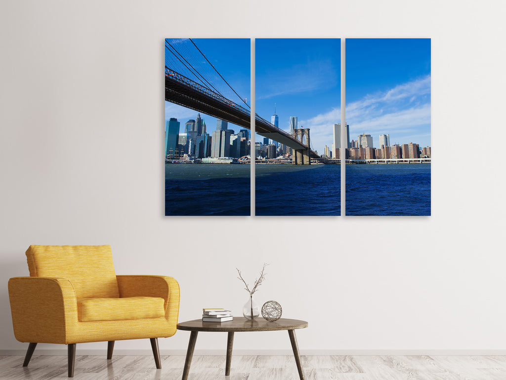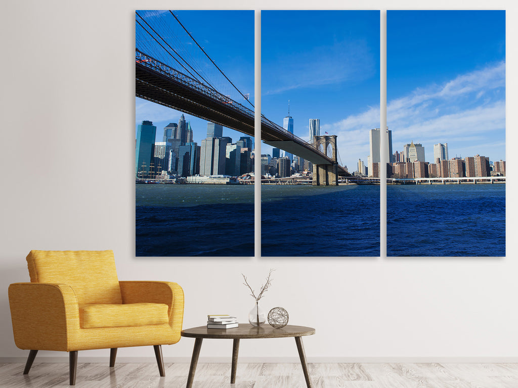 Leinwandbild 3-teilig Brooklyn Brücke bei Sonnenschein