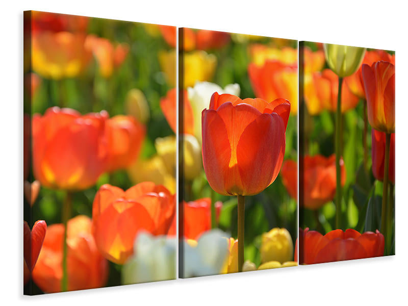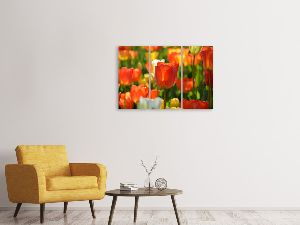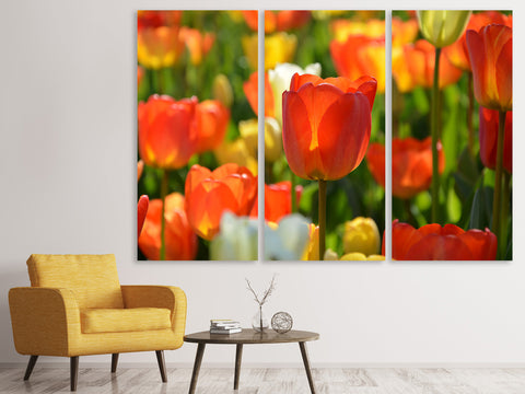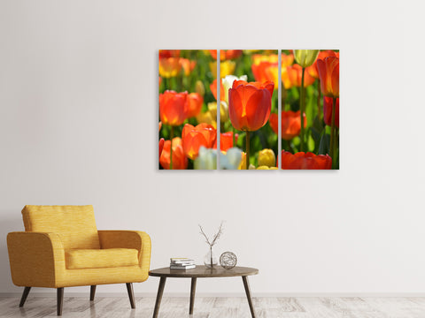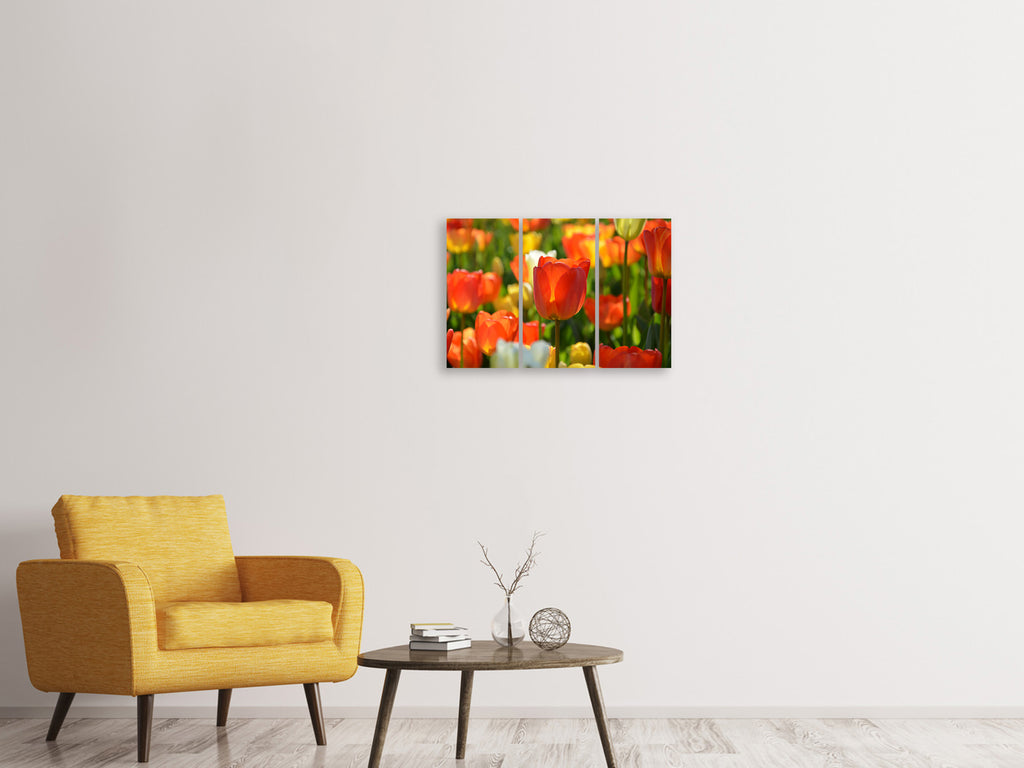 Leinwandbild 3-teilig Close up Tulpenfeld