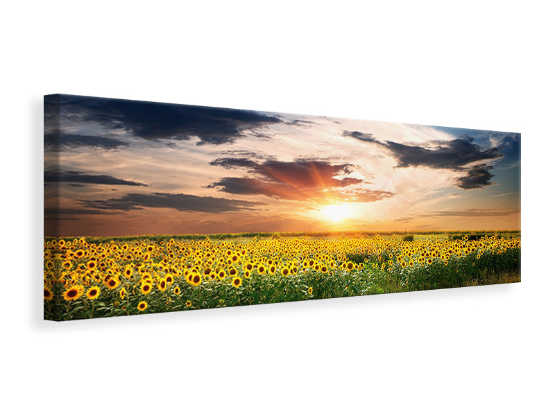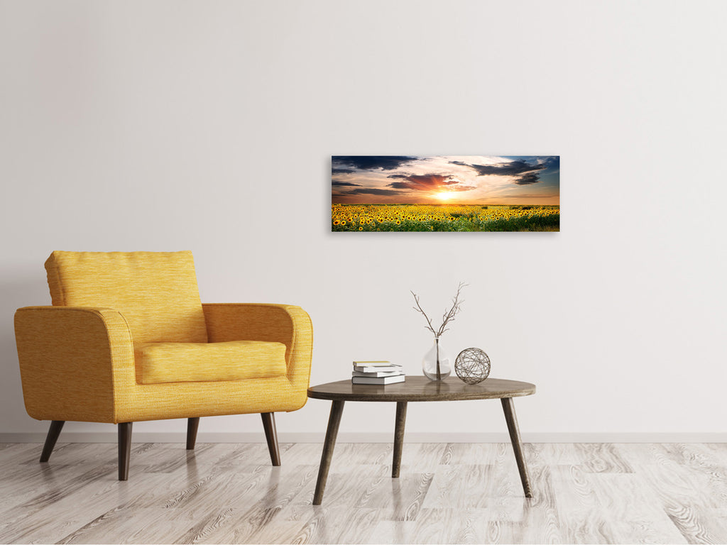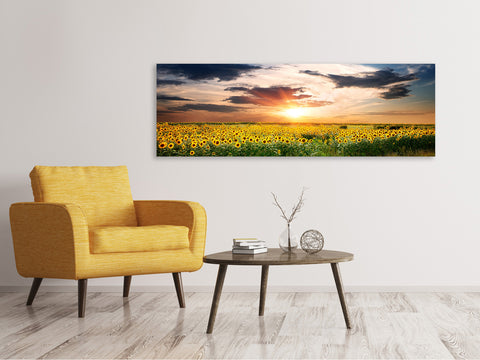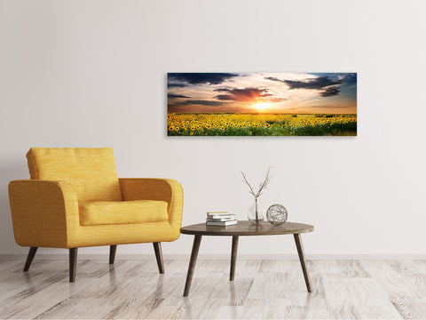 Leinwandbild Panorama Ein Feld von Sonnenblumen