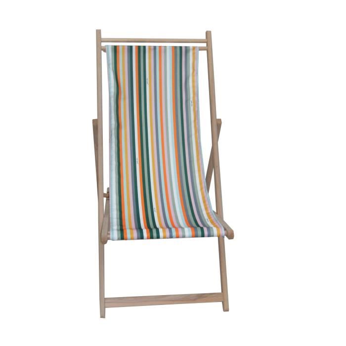 Abnehmbarer Liegestuhl Manon grün - Abnehmbare Leinwand - Struktur aus massiver Buche FSC natürliche Farbmultiposition: 3 Neigungspositionen - Leinwand Manon grüne Streifen Farbe grün / mehrfarbig aus Baumwollpolyester 170 g / m - Wasserabweisender behandelter Stoff - Hergestellt in Frankreich.