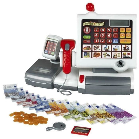 Hervorragende taktile Registrierkasse mit Scannerfunktion, Waage, Licht, Soundeffekten, Display mit Display, echter Taschenrechnerfunktion, Kreditkartenpassage und Code-Komposition mit Soundeffekten. Enthält Kreditkarte, Banknoten und Dummy-Münzen. Gemischt. Ab 3 Jahren - Einzeln geliefert